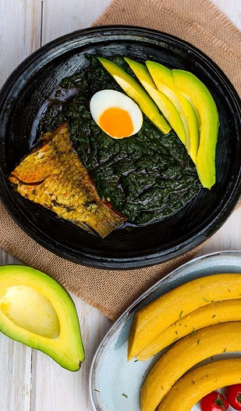 with Cassava Leaves/Beef & Wale Stew/ Chicken Stew/Fish Stew/Cocoyam leaves Stew